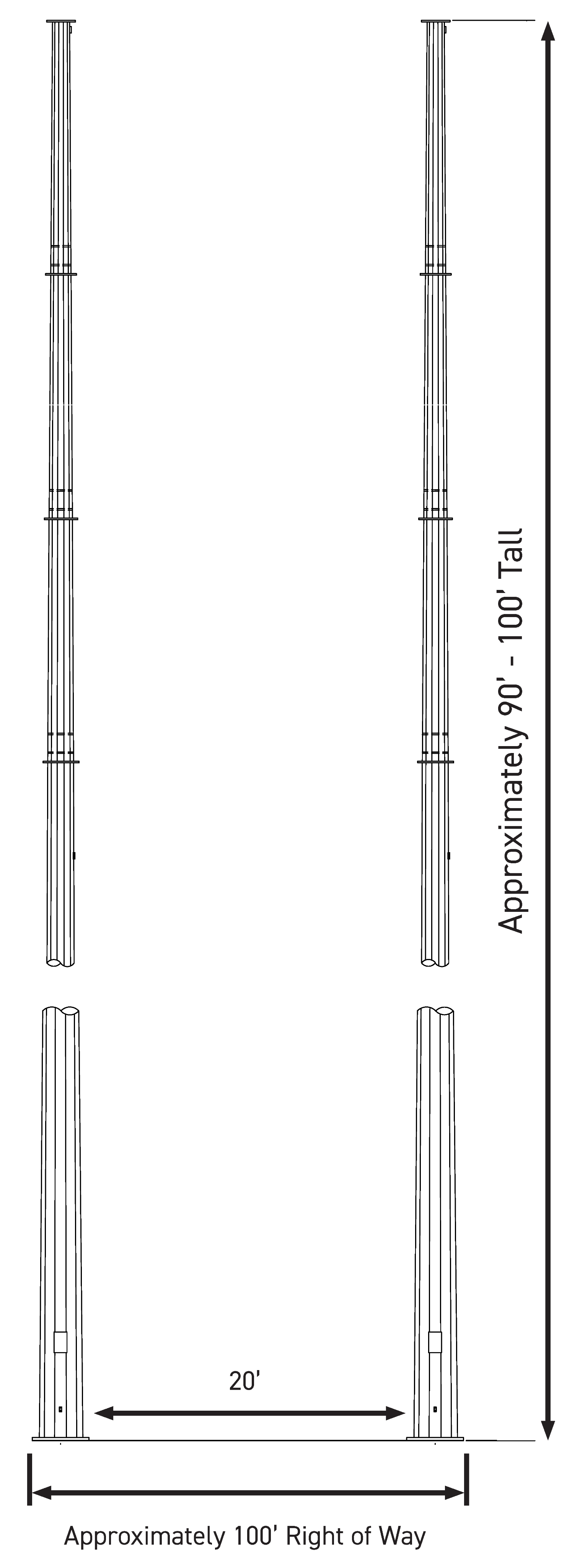 Weathered steel poles will be delivered to the site location shortly before the poles are ready to be set. A large crane would then set the pole directly into an excavated hole. The hole will be backfilled with native soil or crushed limestone.
